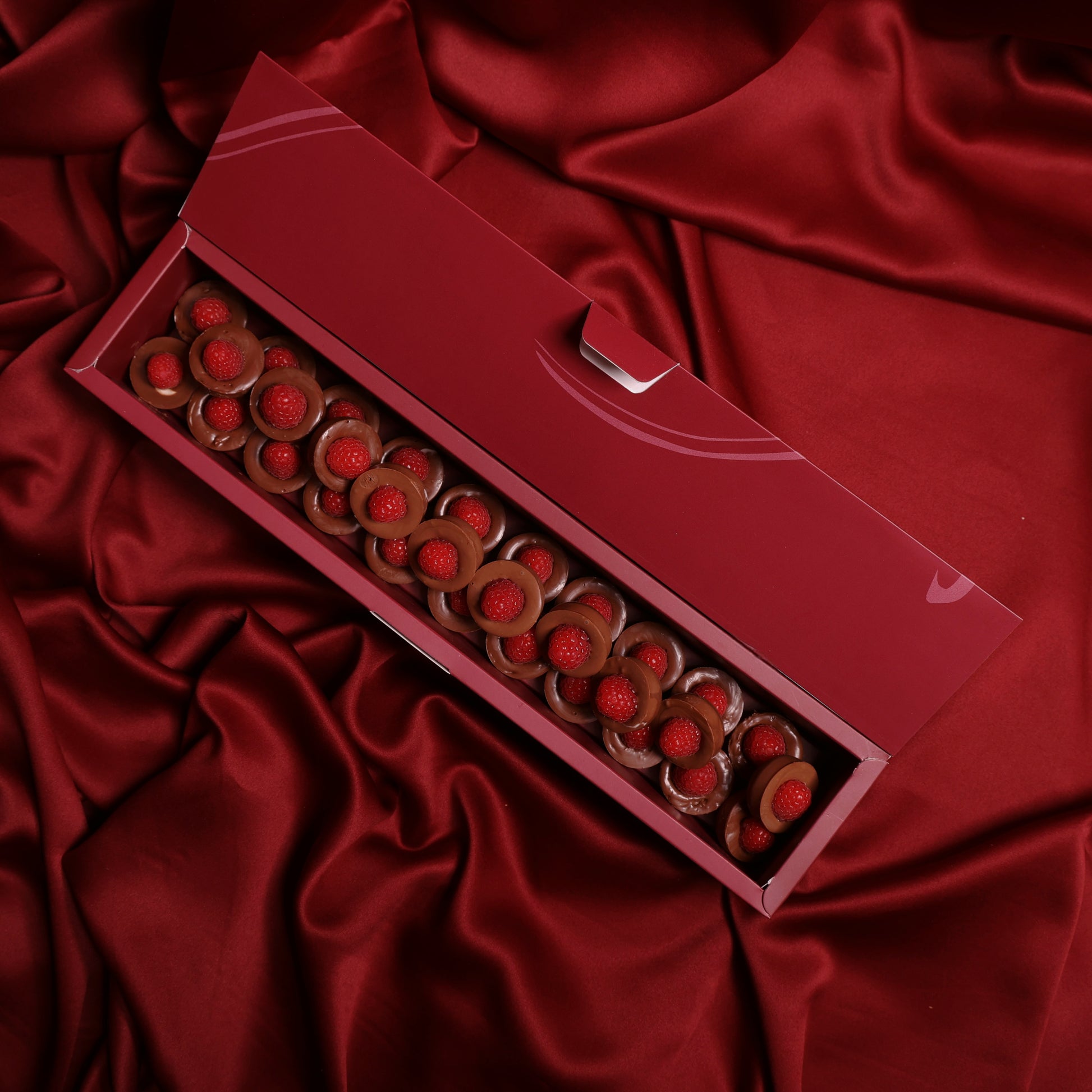 بوكس أنيق يحتوي على ٣٠ قطعة من تشوكليت الفراولة الفاخر، بتوازن مثالي بين نكهة الفراولة الغنية والشوكولاتة عالية الجودة.